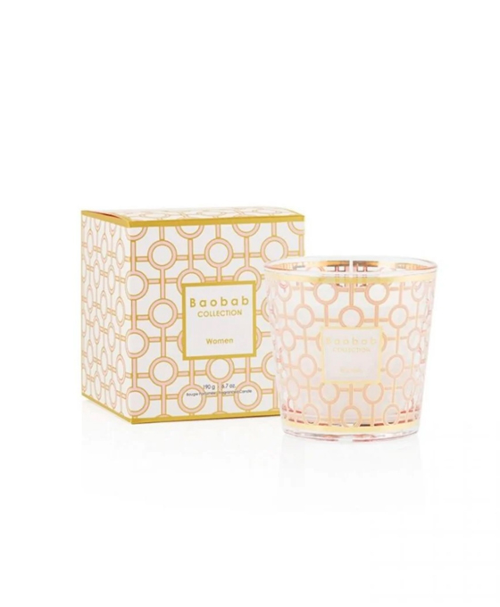 Una vela para mujeres que buscan algo elegante. Nuestra vela para mujer viene con un portavelas de vidrio decorado con un diseño dorado y rosa empolvado. El diseño gráfico de esta hermosa vela representa el signo femenino. ¿Buscas regalos con aroma a rosas, con un perfume almizclado y profundamente femenino? No busques más.